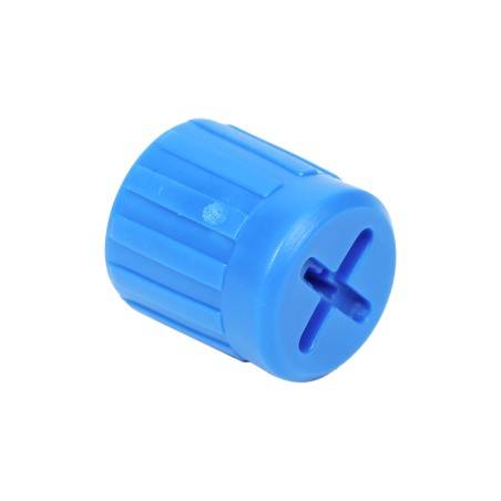 - Cuves en plastique transparentes et têtes en plastique bleu.