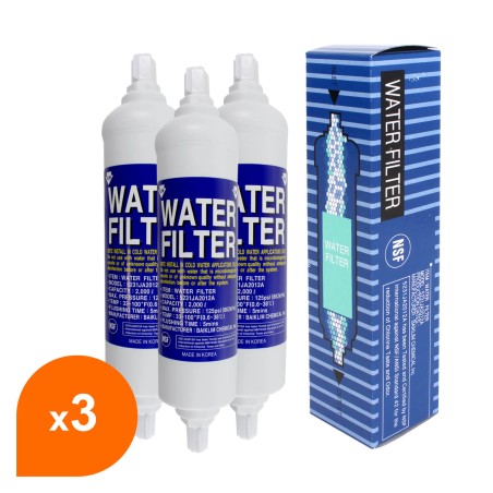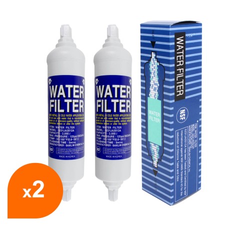 Filtre à eau compatible pour réfrigérateur LG. En remplacement du filtre d'origine BL-9808 (5231JA2012A) placé à l'extérieur du compartiment, il se fixe à l'aide des raccords intégrés en 1/4'' (soit environ 6,35 mm de diamètre).