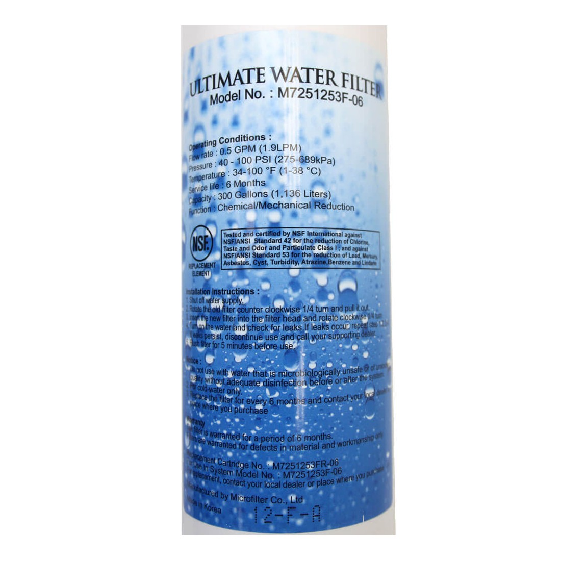 Le filtre frigo LG Ultimate M7251253F-06 filtre compatible est certifié NSF International sur la base de la norme NSF/ANSI 42.