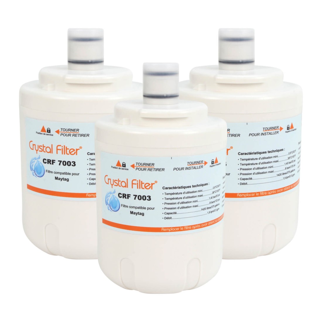 Filtre Crystal Filter® CRF7003 compatible Maytag 4830310100 (lot de 3).