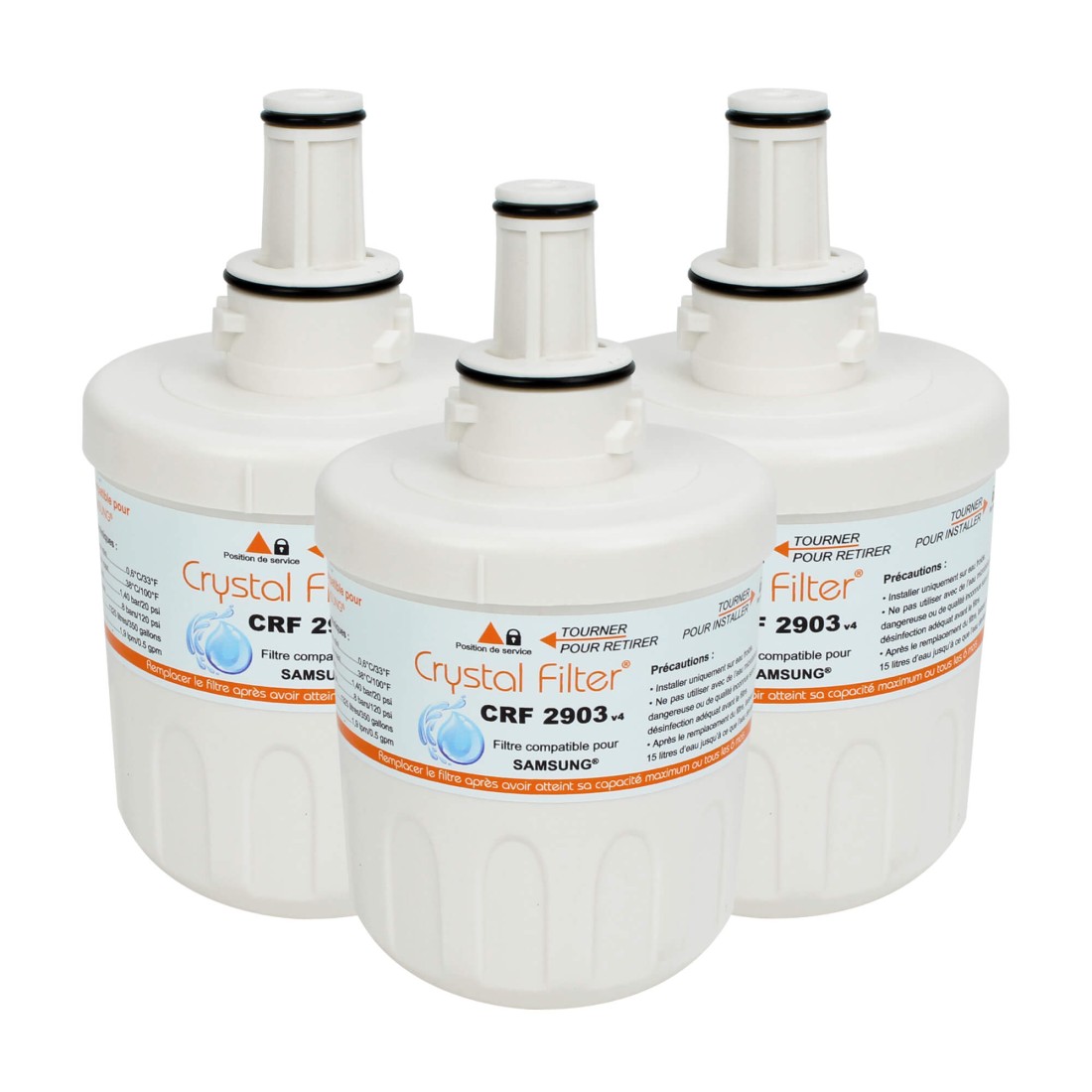 Filtre frigo Crystal Filter® CRF2903 v4 compatible DA29 frigo Samsung® (lot de 3) :