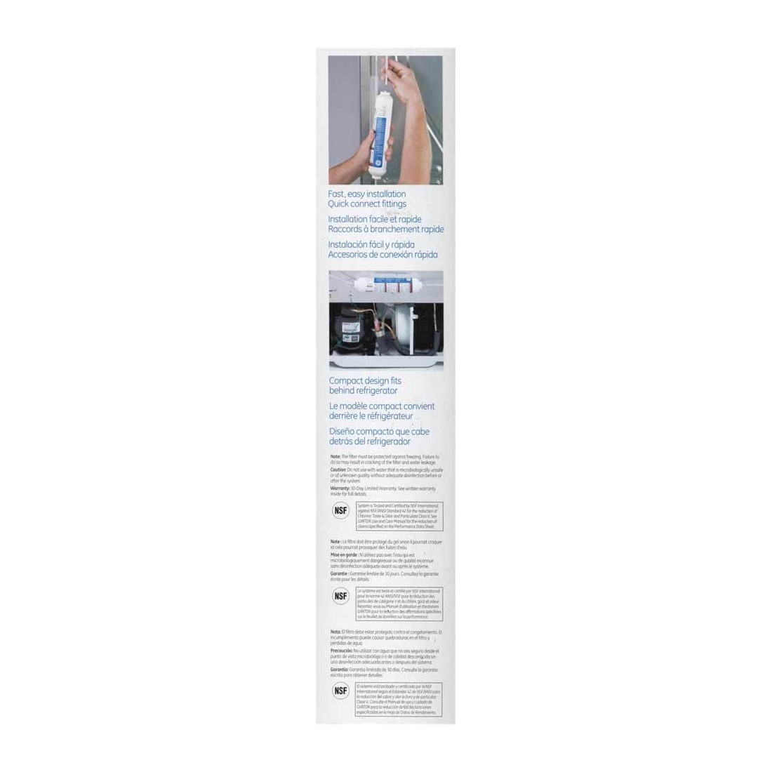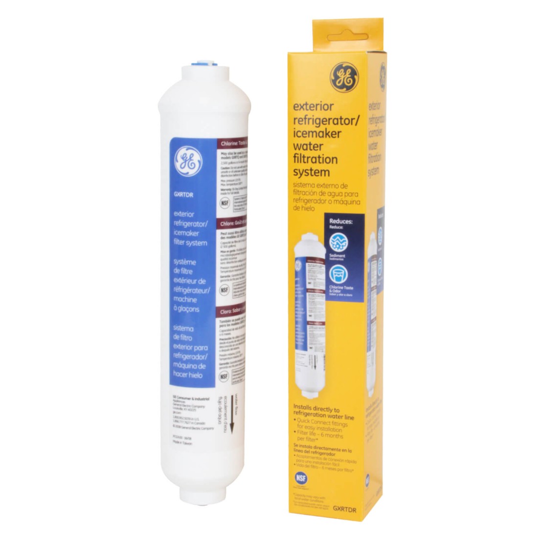 En remplacement du filtre d'origine GXRTDR GE, GXRTDR, GXITQ, GXITQR, placé à l'extérieur du compartiment, il se fixe à l'aide des raccords intégrés en 1/4'' (soit environ 6,35 mm de diamètre).