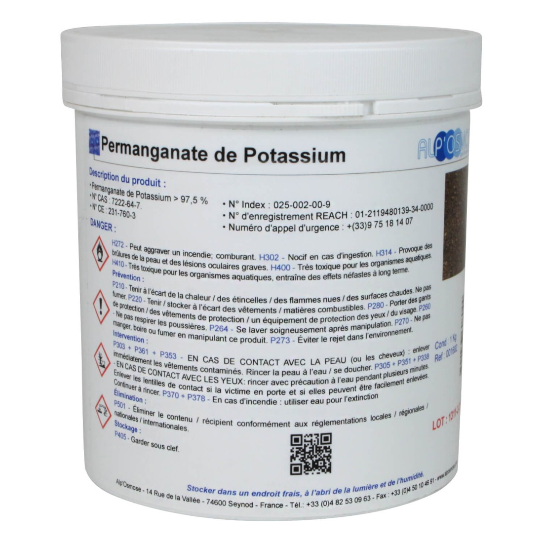 Le Permanganate de potassium doit être manipulé avec précautions car il peut créer des tâches marron sur les vêtements et la peau en cas de contact.