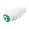 Ensuite, couper le tuyau du rejet, puis brancher un restricteur de 350 ml par minute, regardez bien l’indication de sens de circulation de l’eau.
