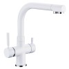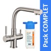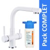 Il est équipé d’un système vous permettant d’avoir : de l’eau chaude, de l’eau froide et de l’eau filtrée (l’eau filtrée passant dans un tuyau indépendant et ne se mélangeant donc pas à l’eau du réseau).