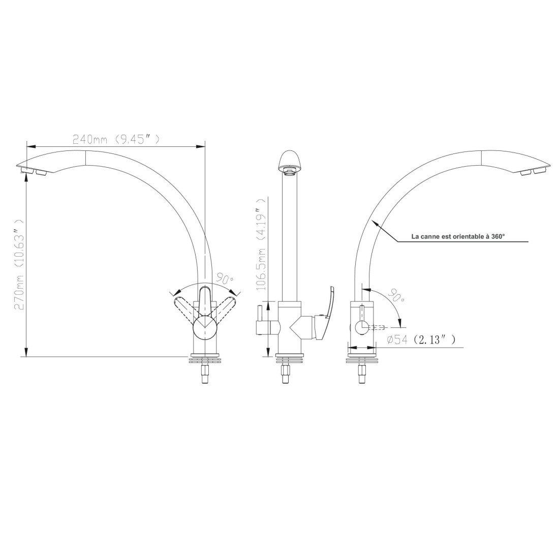 Pour eau du réseau et eau purifiée. Flexibles 3/8''.