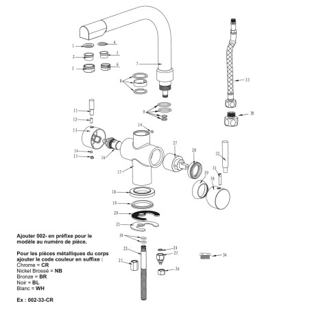 Si besoin vous pouvez aussi totalement desserrez la vis 4 pour sortir le col du robinet 3 voies et graisser à l'aide d'une graisse silicone alimentaire les joints et les pièces 8 du mode d'emplois.