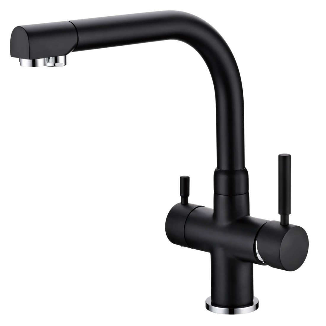Robinet mitigeur pour eau chaude, eau froide et eau purifiée.