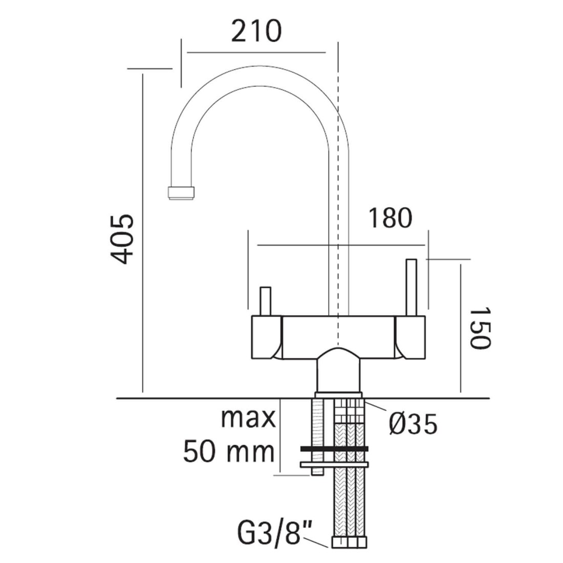 Robinet mitigeur 3 voies à eau filtrée intégrée - Col de cygne - Anemone - Chromé :