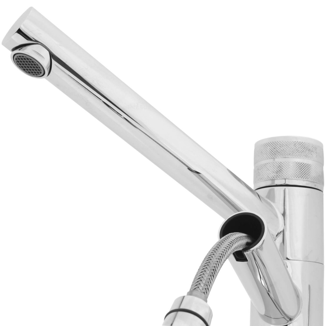 La cartouche de mélange en céramique est fabriquée par Kerox, l'un des leaders mondiaux. Ce robinet en laiton est fourni avec des tuyaux flexibles en acier inoxydable doublés à l'intérieur en caoutchouc NBR.