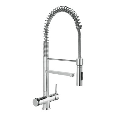 Grâce au robinet Torino, vous pouvez vous servir de votre système de purification (osmoseur, filtre sous évier) directement au robinet de la cuisine. Ainsi pas de trou supplémentaire pour un robinet secondaire, passez en un tour de main de l'eau du réseau à l'eau filtrée.