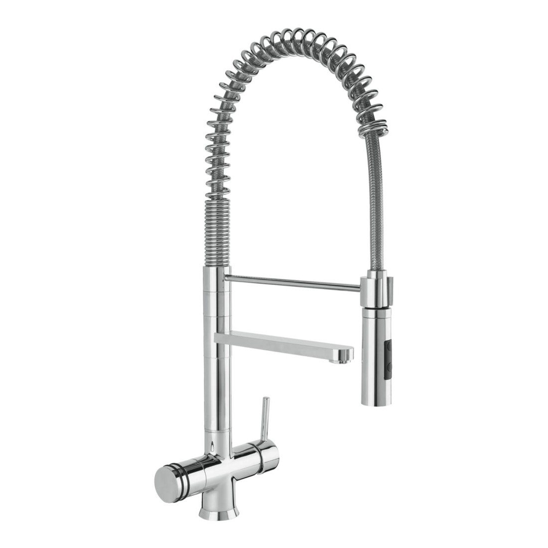3 voies pour : eau chaude, eau froide et eau filtrée.