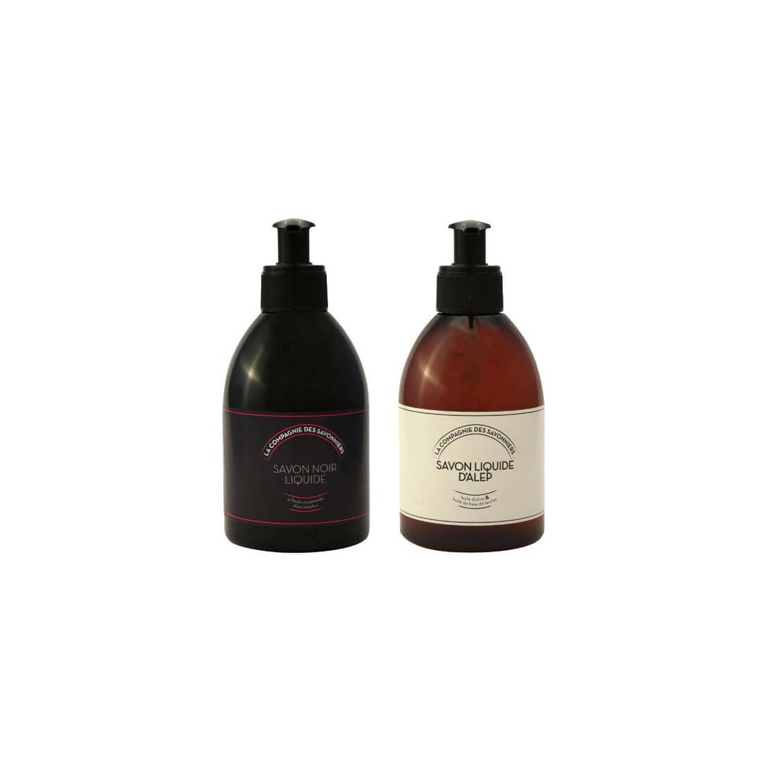 - 1 flacon 300 ml de savon liquide d'Alep : le savon liquide d'Alep est fabriqué à l'ancienne au chaudron sous la responsabilité d'un maître savonnier. La composition du savon d'Alep à base d'huile d'olive et d'huile de baies de laurier est naturellement glycérinée.