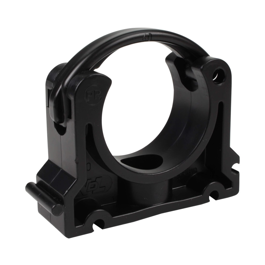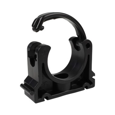 Matière PP noir. Fixation par vis, avec clip de retenue en PVC.